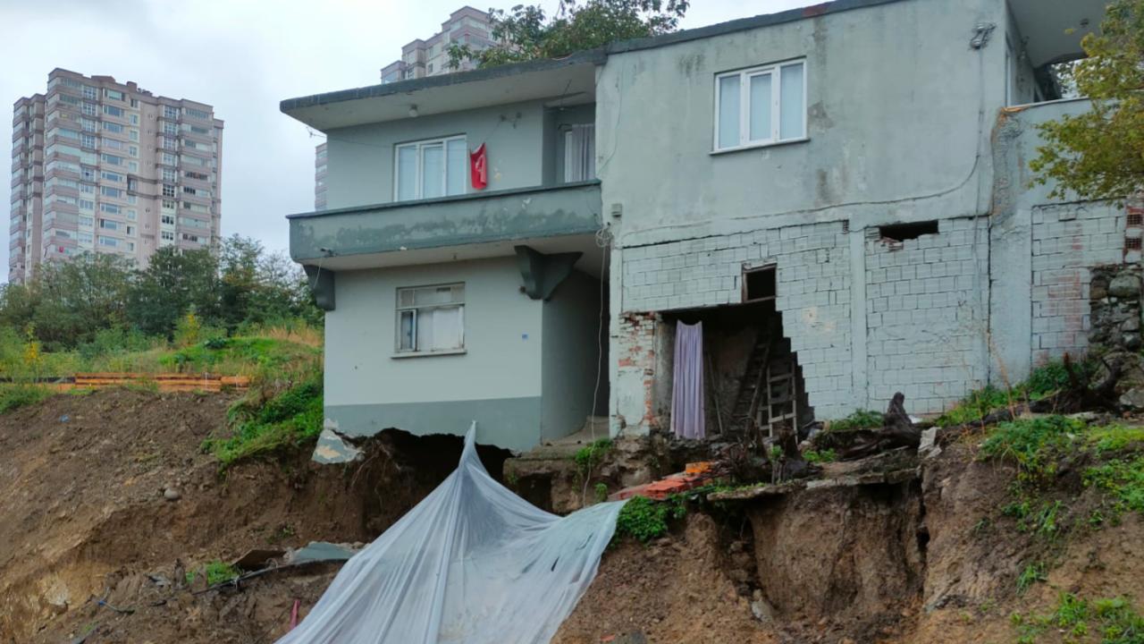 Bir süredir kimsenin yaşamadığı binanın zemin katı heyelan nedeniyle hasar gördü.