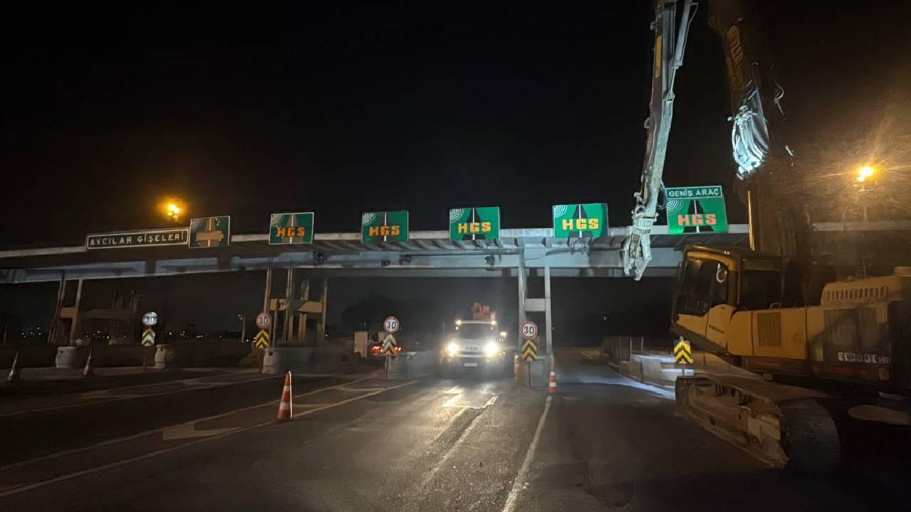 Karayolu alanına getirilen inşaat makinelerinin yardımıyla, ücretli kabinlerin kaldırılması başladı.